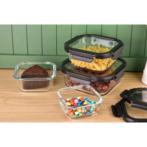 با ظرف فریزری 4 تکه پیرکس دربدار مربع یونیک، نگهداری مواد غذایی را به سطح جدیدی از تازگی و ایمنی ببرید! طراحی منحصربهفرد و درب چفتی محکم، نشت و خراب شدن غذا را به گذشته تبدیل میکند. مناسب برای فریزر، مایکروویو و ماشین ظرفشویی. ایدهآل برای ذخیره و نگهداری بلندمدت!