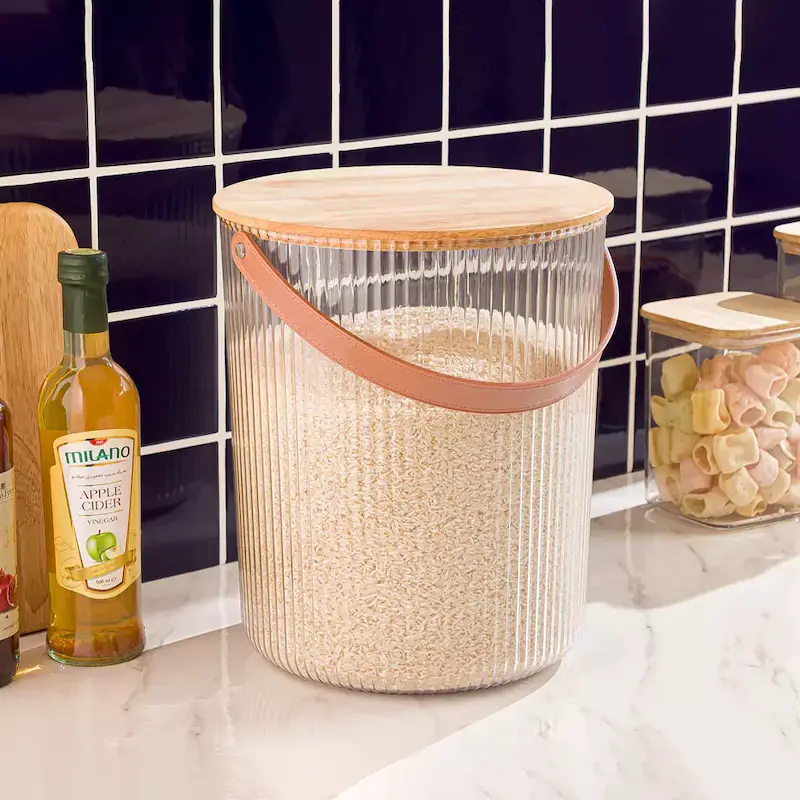 سطل برنج شیاردار لیمون با درب چوبی، ترکیبی از زیبایی و کارایی برای آشپزخانه شما! با طراحی کلاسیک و دوام بالا، محافظی ایدهآل برای نگهداری برنج است. با ظرفیت مناسب و کیفیت برتر، تجربهای منحصر به فرد از نگهداری مواد غذایی را به شما هدیه میدهد. همین حالا خرید کنید و به آشپزخانهتان جلوهای نو ببخشید!