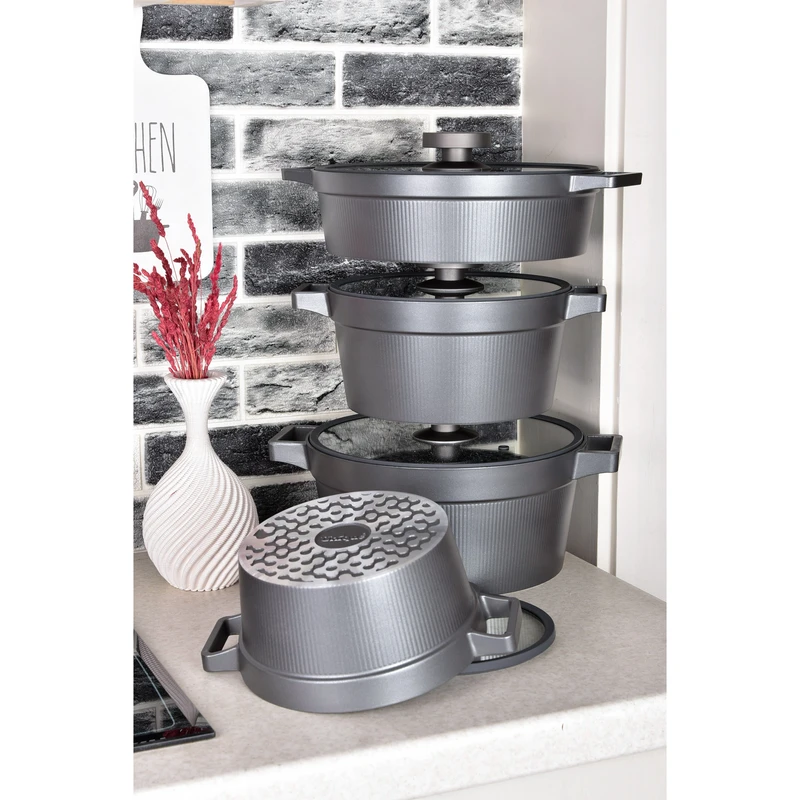 با سرویس قابلمه 8 پارچه یونیک مدل دیاموند کد 8506، تجربهی آشپزی خود را به سطحی تازه ببرید! طراحی شیک و الماسی آن علاوه بر زیبایی، با پوشش نچسب و توزیع حرارت یکنواخت، شما را در تهیه غذاهای لذیذ یاری میکند. این سرویس مقاوم و بادوام، انتخابی ایدهآل برای هر آشپزخانه مدرنی است. همین امروز خرید کنید و لذت آشپزی را دوچندان کنید!